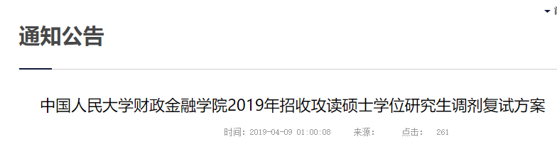 根據(jù)《中國人民大學(xué)碩士研究生復(fù)試工作管理辦法》中關(guān)于調(diào)劑復(fù)試的相關(guān)規(guī)定,我院對(duì)2019年攻讀碩士學(xué)位研究生調(diào)劑復(fù)試相關(guān)事宜做如下安排:
