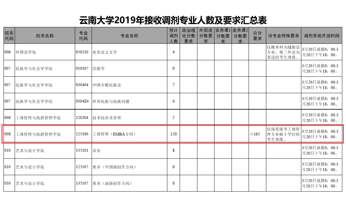EMBA接受調(diào)劑的院校 | 云南大學(xué)2019年接收EMBA調(diào)劑的通知”,希望對需要調(diào)劑的同學(xué)有所幫助,以下為調(diào)劑通知: