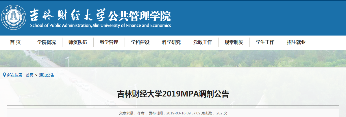 MPA接受調(diào)劑的院校 | 吉林財經(jīng)大學2019年接收MPA調(diào)劑的通知”的全部內(nèi)容,更多關(guān)于MPA院校調(diào)劑信息,盡在“