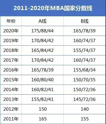 從歷年分?jǐn)?shù)線可以看出,MBA國家分?jǐn)?shù)線一般在150—175之間,且A類地區(qū)的分?jǐn)?shù)線高于B類地區(qū),A、B兩地一般相差10分。下圖是近10年MBA國家分?jǐn)?shù)線,供大家參考。