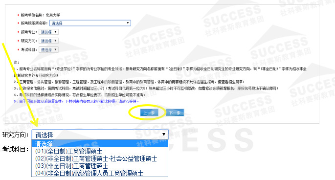 第三,“考生科目”一般為(199)管理類聯(lián)考綜合能力|(204)英語二|,若有小語種選項(xiàng),請(qǐng)自行選擇。