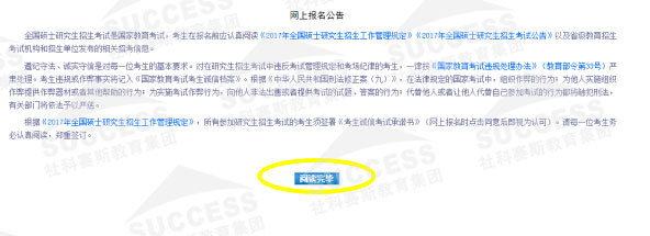 4.點(diǎn)擊新增報(bào)名信息以后,進(jìn)入網(wǎng)上報(bào)名公告頁面,閱讀后點(diǎn)擊閱讀完畢