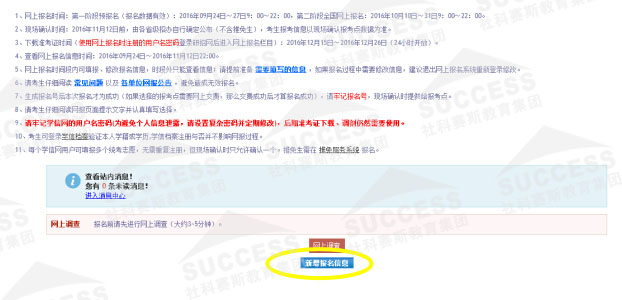 3、 查看網(wǎng)上報(bào)名信息時(shí)間:2016年09月24日~2016年11月12日22:00。