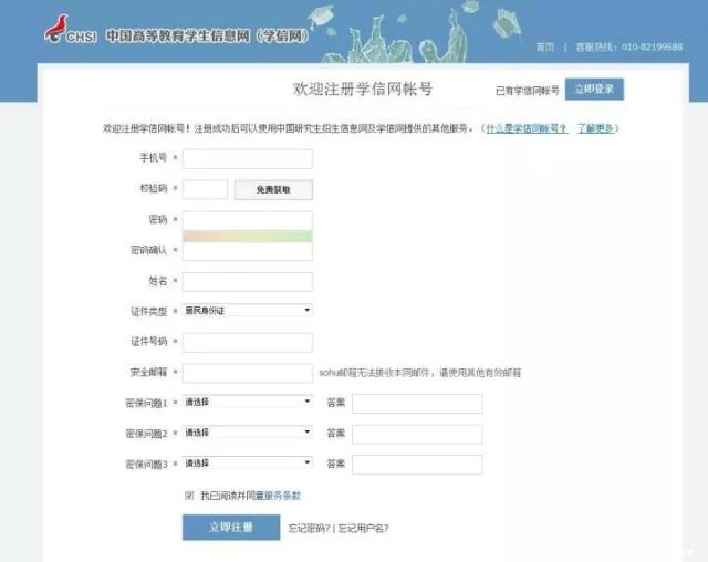注:已有學(xué)信網(wǎng)賬號的考生可直接登陸,沒有學(xué)信網(wǎng)賬號的同學(xué)請先注冊學(xué)信網(wǎng)賬號。