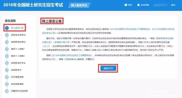 仔細(xì)閱讀教育部公告后點(diǎn)擊“閱讀完畢”。