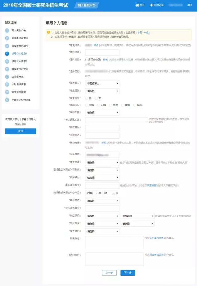 報名期間研招網(wǎng)將對考生學(xué)歷(學(xué)籍)信息進(jìn)行網(wǎng)上校驗(yàn),并在考生提交報名信息三天內(nèi)反饋校驗(yàn)結(jié)果??忌呻S時上網(wǎng)查看學(xué)歷(學(xué)籍)校驗(yàn)結(jié)果。考生也可在報名前或報名期間自行登錄“中國高等教育學(xué)生信息網(wǎng)(網(wǎng)址:http://www.chsi.com.cn)查詢本人學(xué)歷(學(xué)籍)信息。
