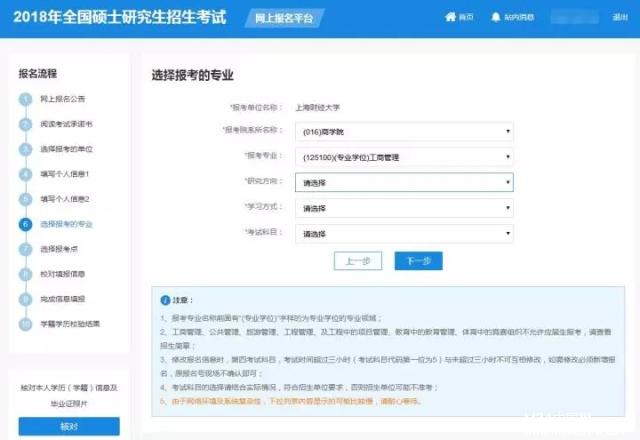 ● “研究方向”為(01)工商管理(全球);(02)工商管理;(03)工商管理(金融投資)和(04)高級管理人員工商管理碩士。其中01-03為MBA項(xiàng)目班級,04為EMBA項(xiàng)目,各項(xiàng)目班級特色詳見《上海財經(jīng)大學(xué)2018年入學(xué)MBA(EMBA)招生簡章》;選擇01的考生在“學(xué)習(xí)方式”中選擇“(1)全日制”,選擇02-04的考生在學(xué)習(xí)方式中選擇“(2)非全日制”。