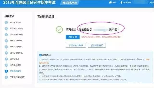 5、生成報名號后本次報名才為成功(如果選擇的報考點(diǎn)采取網(wǎng)上交費(fèi),交費(fèi)成功后才算報名成功),報名號是現(xiàn)場確認(rèn)的重要憑證,請考生務(wù)必牢記。