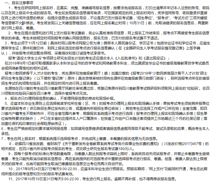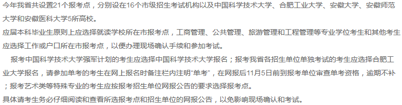 導(dǎo)讀:特別提醒:按教育部規(guī)定,一位考生網(wǎng)報(bào)期間只能保留一條有效報(bào)名信息。請考生認(rèn)真閱讀各省、報(bào)考點(diǎn)及招生單位網(wǎng)報(bào)公告,并按要求慎重選擇報(bào)考點(diǎn),因錯選報(bào)考點(diǎn)等情況導(dǎo)致不能現(xiàn)場確認(rèn)、不能參加考試,后果由考生本人承擔(dān)。