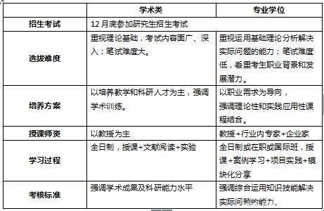 可以看出,不論學術型還是專業(yè)學位都是國家統(tǒng)招的碩士研究生,在學位要求上沒有差別,只是學術型學位以學術研究為導向,偏重理論和研究;而專業(yè)學位以職業(yè)需求為導向,重視實踐和應用的培養(yǎng)。