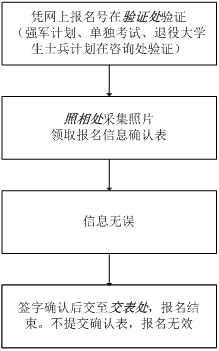 1.所有考生均應在規(guī)定時間內到報考點指定地方現場核對并確認本人網上報名信息,否則報名無效,報名信息經考生本人確認后一律不作修改,因考生填寫錯誤引起的后果由本人自行承擔,逾期不再補辦。