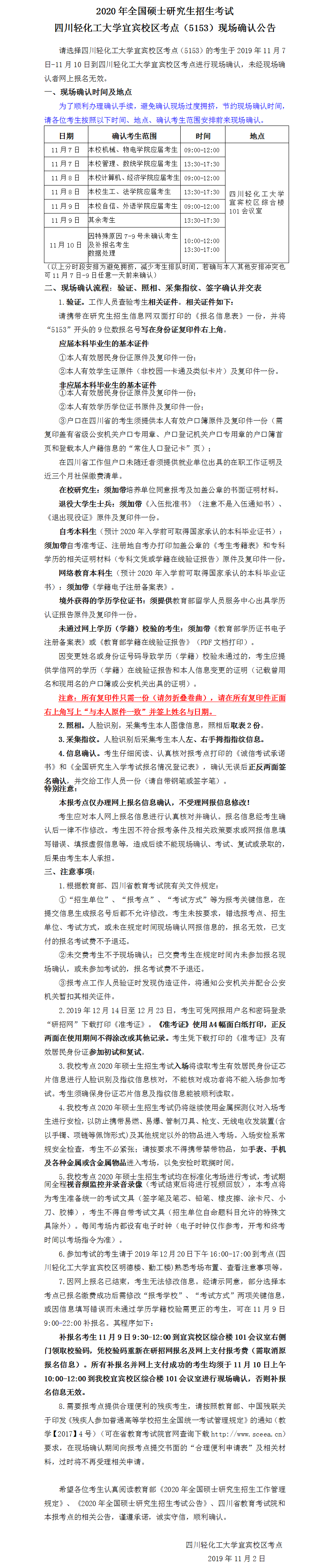 以上就是“2020MBA現(xiàn)場確認(rèn)時間:四川輕化工大學(xué)(宜賓校區(qū))于11月7-10號現(xiàn)場確認(rèn)另附所需材料”的全部內(nèi)容!請考生務(wù)必參加現(xiàn)場審核,祝你考研成功。
