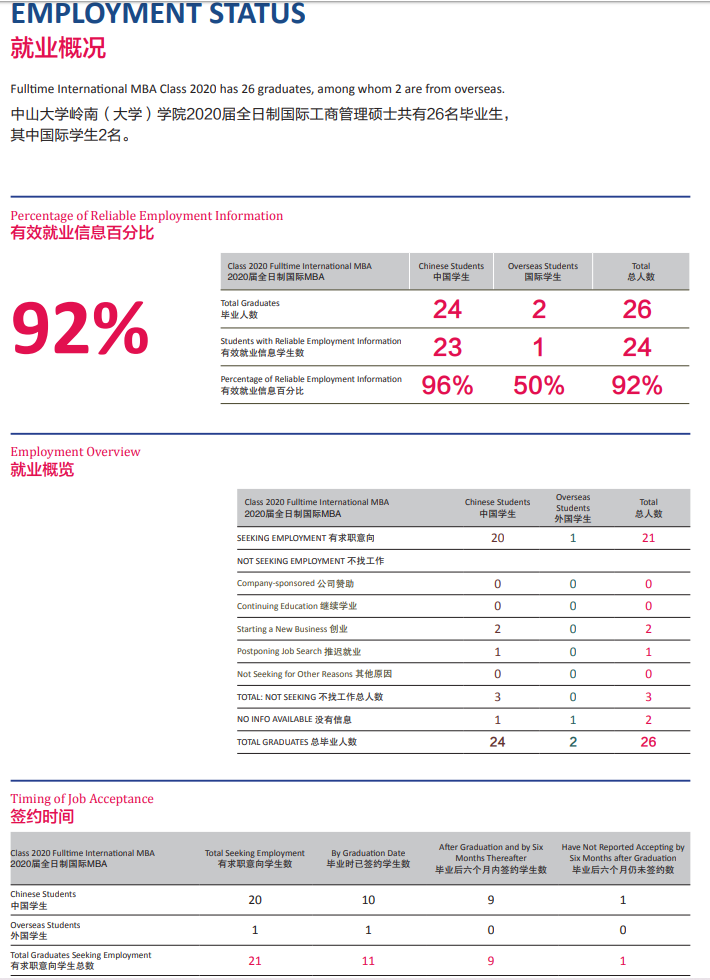 導讀:眾所周知,畢業(yè)生就業(yè)分析是很重要的信息,考生可以根據(jù)就業(yè)質(zhì)量報告里的數(shù)據(jù)分析,來考慮報考這個專業(yè)之后的就業(yè)情況。今日,社科賽斯MBA備考網(wǎng)小編整理了“MBA就業(yè)數(shù)據(jù)分析:2020屆中山大學嶺南(大學)學院全日制MBA畢業(yè)生就業(yè)情況”的內(nèi)容,希望對報考MBA的同學有一定的幫助,趕快看看吧!