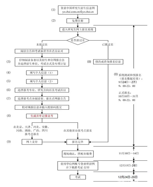 2017年統(tǒng)考網(wǎng)上報名時間:第一階段時間:2016年9月24日至27日,每天9:00至22:00;第二階段時間:2016年10月10日至31日,每天9:00至22:00。兩階段的報名均為有效報名,考生無需重新填報。