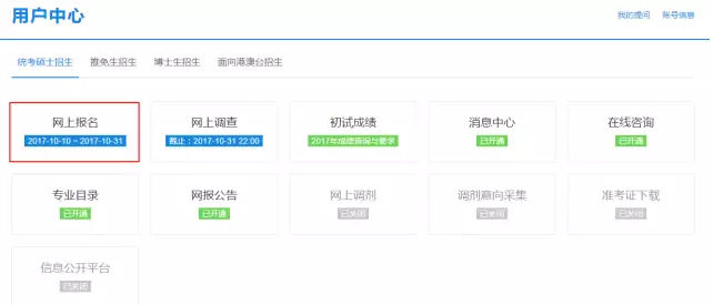 5、完成注冊(cè),點(diǎn)擊“研究生招生”按鈕。
