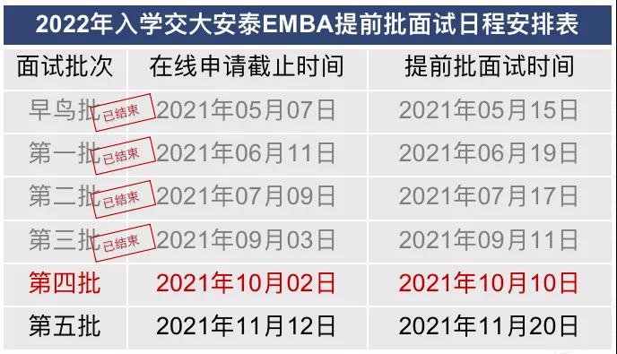 2022EMBA提前面試:【EMBA面試】上海交大安泰EMBA第四批面試提前至10月10日”,更多相關(guān)信息,請持續(xù)關(guān)注本網(wǎng)站!