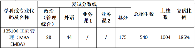 MBA/EMBA總評成績=((管理類聯(lián)考綜合能力+聯(lián)考英語)/3)×60%+復試成績×40%。