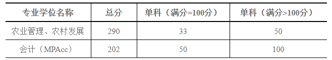 (2)農(nóng)業(yè)管理、農(nóng)村發(fā)展及會計(MPAcc)復試資格線為:
