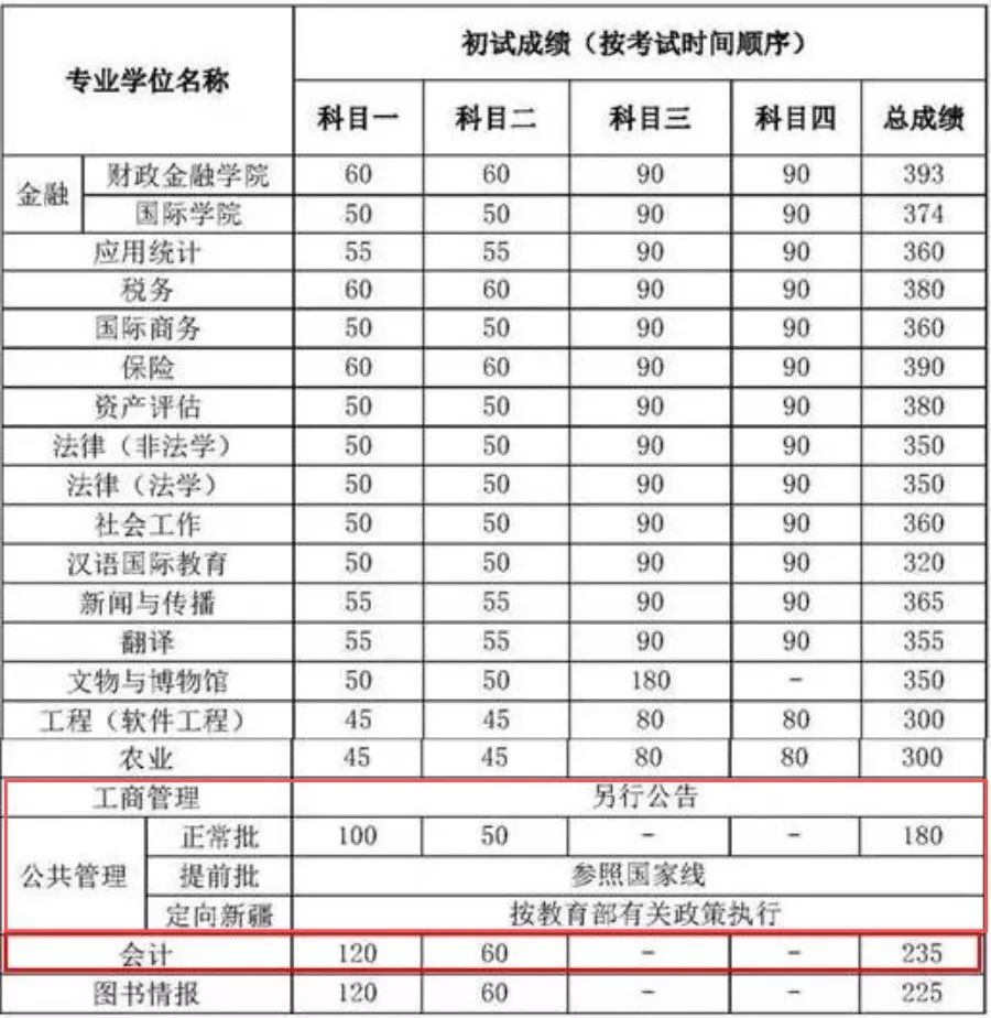 注:工商管理碩士[1251]、公共管理碩士[1252]復(fù)試基本線在全國分數(shù)基本要求公布后確定。