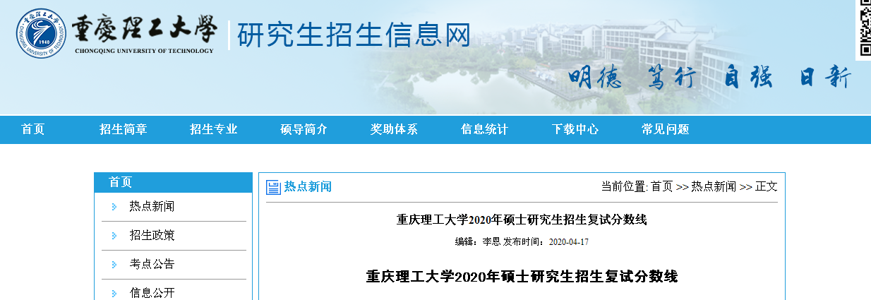 首頁(yè)> MBA分?jǐn)?shù)線 > 2020考研分?jǐn)?shù)線:重慶理工大學(xué)2020年碩士研究生招生復(fù)試分?jǐn)?shù)線