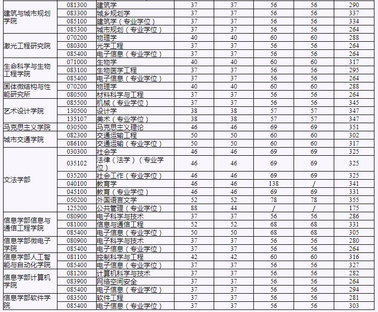 導(dǎo)讀:繼2020考研國家線公布后,34所自主劃線院校和各大院校也陸續(xù)公布2020年復(fù)試分?jǐn)?shù)線。北京工業(yè)大學(xué)已經(jīng)公布2020年碩士研究生入學(xué)考試復(fù)試基本分?jǐn)?shù)線,如下所示: