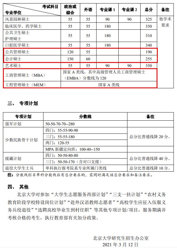 導(dǎo)讀:眾所周知,2021考研成績(jī)公布后,考研國(guó)家線、報(bào)考院校分?jǐn)?shù)線是考生關(guān)注重點(diǎn)。2021考研國(guó)家線已于3月12日公布,34所自主劃線院校復(fù)試分?jǐn)?shù)線也陸續(xù)公布。今天小編整理了“2021管理類聯(lián)考(MBA MPA MEM MPAcc MLIS MAud MTA)34所自主劃線院校分?jǐn)?shù)線:北京大學(xué)2021考研復(fù)試分?jǐn)?shù)線”的內(nèi)容,各位考生了解一下~