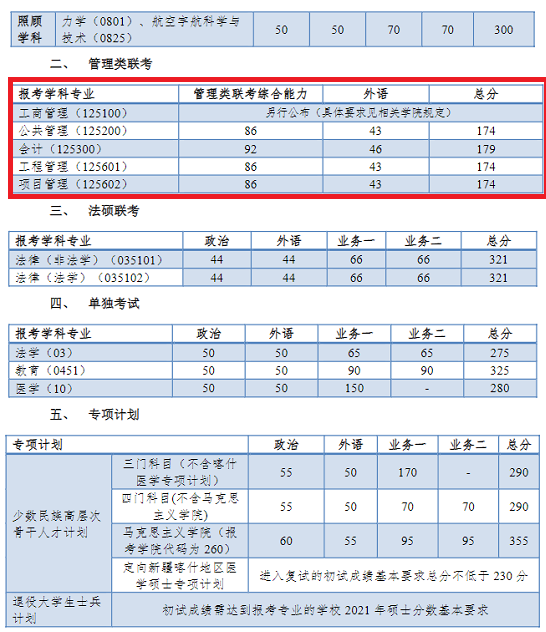 注:1.生源充足的學(xué)院在達(dá)到學(xué)校復(fù)試分?jǐn)?shù)基本要求的情況下,可根據(jù)本學(xué)科、專業(yè)特點(diǎn)向上調(diào)整本學(xué)院復(fù)試分?jǐn)?shù)要求,具體以各學(xué)院通知為準(zhǔn)。2.工程類專業(yè)學(xué)位研究生教育管理中心的報(bào)考學(xué)科專業(yè)包括電子信息、機(jī)械、材料與化工、資源與環(huán)境、能源動(dòng)力、土木水利、交通運(yùn)輸。3.復(fù)試時(shí)間及方案將按教育部和上海市要求及時(shí)向社會(huì)公布,請(qǐng)各位考生及時(shí)關(guān)注同濟(jì)大學(xué)研究生招生信息網(wǎng)相關(guān)通知。