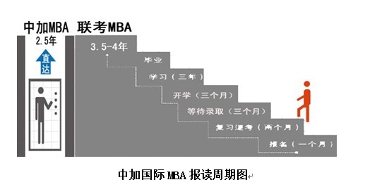 ※報(bào)讀時(shí)間更經(jīng)濟(jì):國(guó)內(nèi)在職聯(lián)考MBA報(bào)讀周期3.5-4年,中加國(guó)際MBA至少超前1.5年