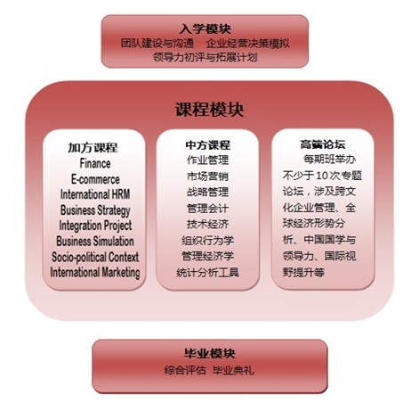 學(xué)制:中加國(guó)際MBA精英項(xiàng)目學(xué)制2年,課程總學(xué)分45學(xué)分,定期集中授課。