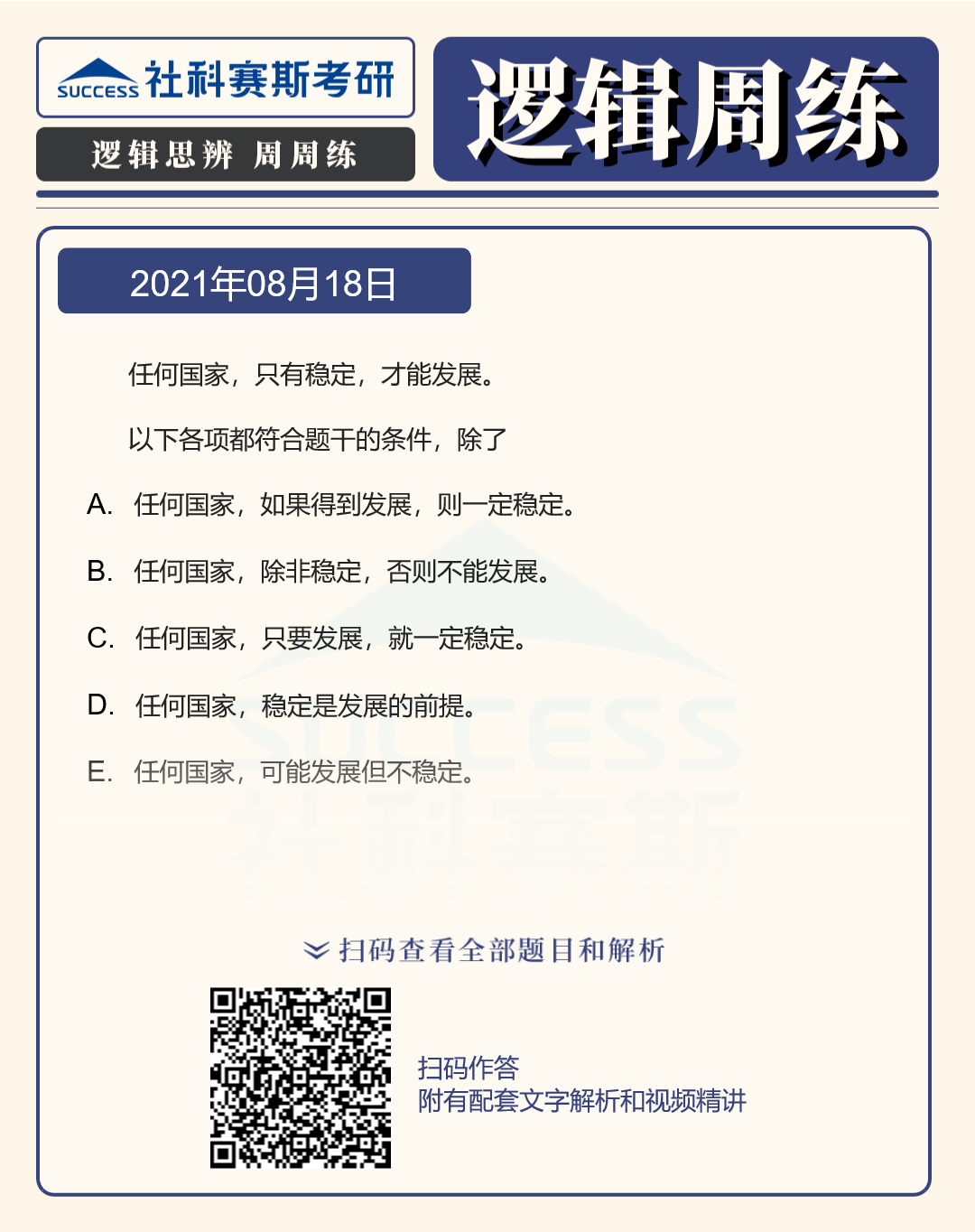 以上就是“2022MBA邏輯:2022MBA聯(lián)考邏輯習(xí)題及答案解析(8月18日)”的全部?jī)?nèi)容,更多邏輯精選習(xí)題,請(qǐng)持續(xù)關(guān)注社科賽斯MBA備考網(wǎng)!