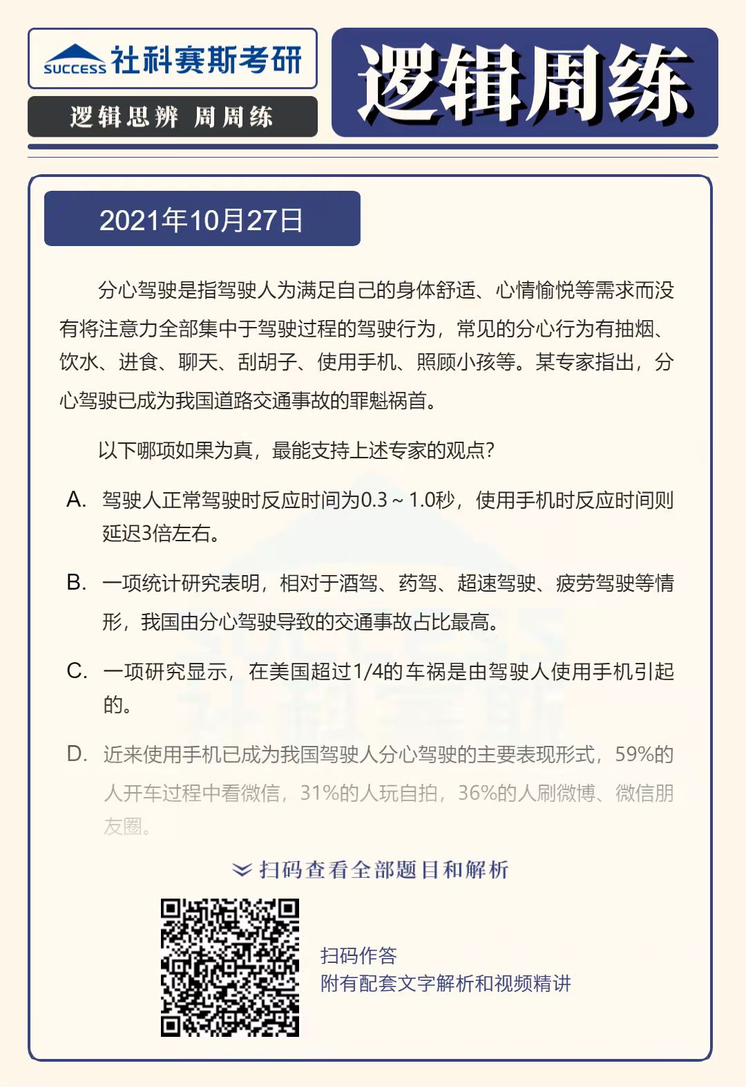 以上就是“2022MBA邏輯:2022MBA聯(lián)考邏輯習(xí)題及答案解析(10月27日)”的全部?jī)?nèi)容,更多邏輯精選習(xí)題,請(qǐng)持續(xù)關(guān)注社科賽斯MBA備考網(wǎng)!