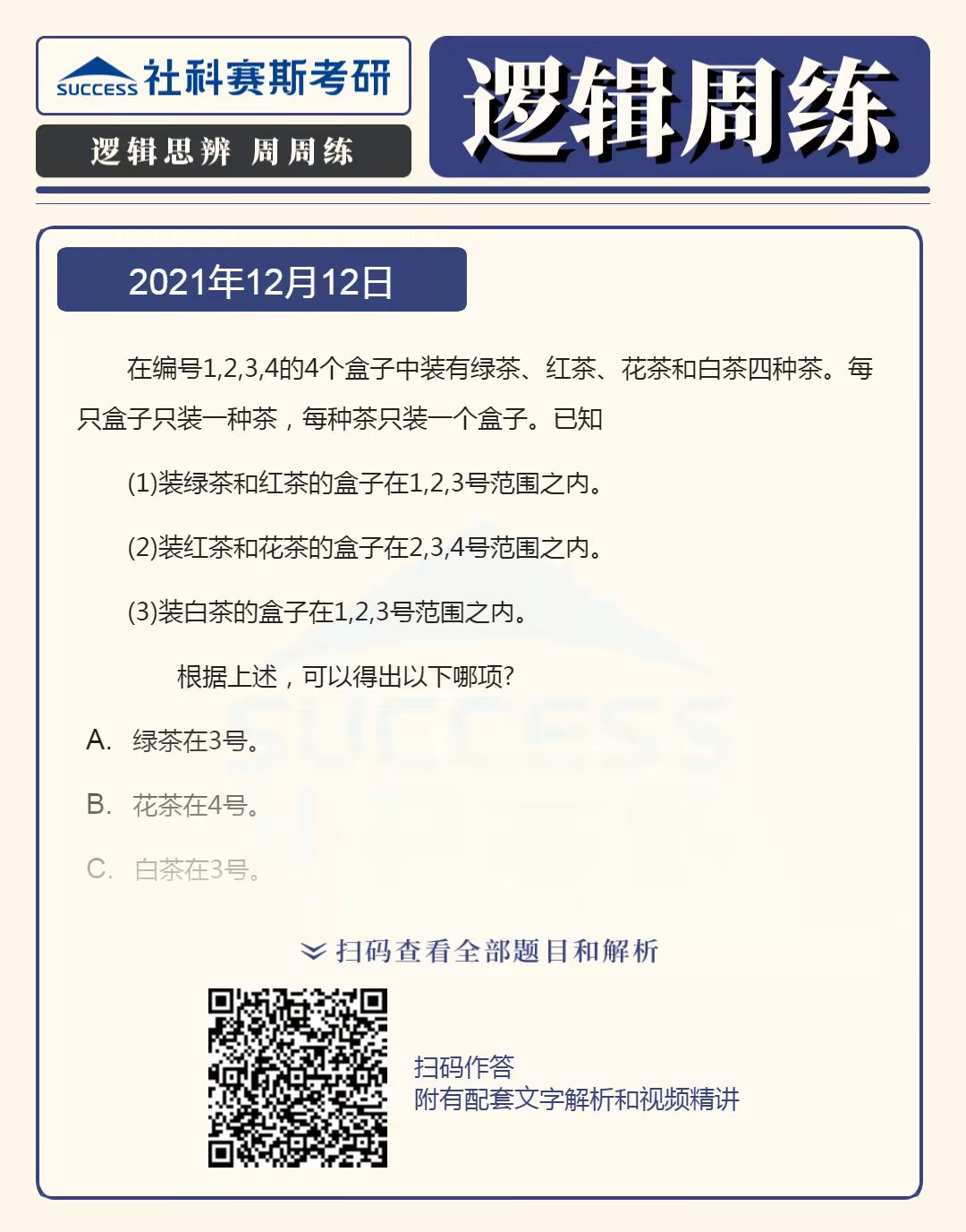 以上就是“2022MBA邏輯:2022MBA聯(lián)考邏輯習(xí)題及答案解析(12月12日)”的全部?jī)?nèi)容,更多邏輯精選習(xí)題,請(qǐng)持續(xù)關(guān)注社科賽斯MBA備考網(wǎng)!