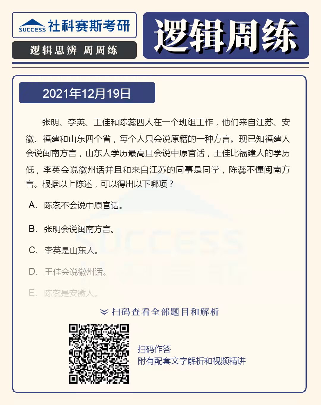 以上就是“2022MBA邏輯:2022MBA聯(lián)考邏輯習(xí)題及答案解析(12月19日)”的全部內(nèi)容,更多邏輯精選習(xí)題,請持續(xù)關(guān)注社科賽斯MBA備考網(wǎng)!