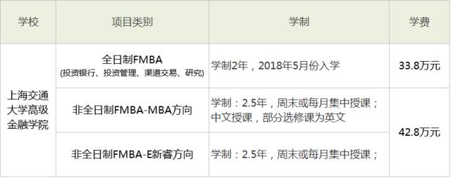 2 上海交通大學高級金融學院 1.項目類別 2.2017錄取分數(shù)線 170/42/84 3.2018招生方式 全日制FMBA 申請條件: 本科畢業(yè)于國內(nèi)外知名院校;年齡23—26歲之間:本科畢業(yè)滿3年,碩士畢業(yè)滿2年 申請流程: 全日制FMBA自2016年起,開始采用夏令營的方式來篩選學生。通過3天的金融課程與職業(yè)發(fā)展專業(yè)學習,讓考生更加明確自己與高金與金融的匹配度,再做出報考決定。同時,高金也通過3天的觀察和最后的面試,擇優(yōu)錄取。 招生變革1: 加大背景審核力度,嚴格篩選夏令營考生名單,在夏令營結(jié)束時直接公布面試結(jié)果。 招生變革2: 高金FMBA簽署了與美國名校UC Berkeley的合作方案,與UC Berkeley金融工程項目聯(lián)合招生。這個項目對考生本科階段數(shù)理相關(guān)科目成績要求非常高。申請通過后,考生于12月參加MBA全國聯(lián)考,次年二月份開始UC Berkeley為期一年的學習,第二年的三月份回國,進入高金第二年課程學習和實習就業(yè)。 招生變革3: 金融機構(gòu)業(yè)務(wù)條線的負責人和人力資源的負責人會一起參與到夏令營,共同審核考生的基本素質(zhì)及對行業(yè)、職業(yè)的匹配度。如果考生被高金錄取,也將同時被納入金融機構(gòu)相關(guān)方向的培養(yǎng)庫。 夏令營時間: 2017年6月17、18日 2017年8月4、5、6日 非全日制FMBA-MBA方向 申請條件: ①擁有學士或以上學位; ②本科畢業(yè)3年,研究生畢業(yè)2年,博士畢業(yè)1年及以上 申請流程: ①網(wǎng)上申請(介紹自己) ?、趨⒓踊顒樱私庠盒#?/p>
