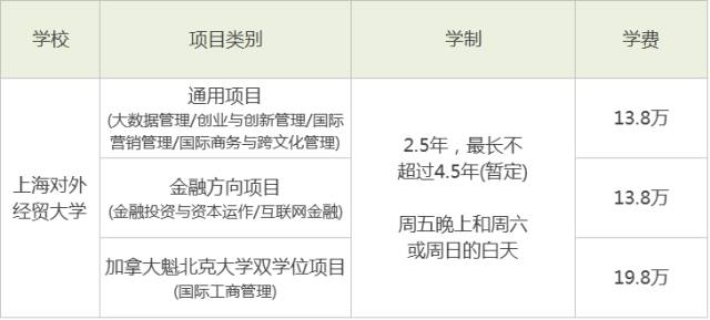 ③全國聯(lián)考 ?、軗駜?yōu)錄取 面試時間:2017年5月22日,8月5、6日 3 華東理工大學 1.招生方式 申請流程: ①優(yōu)秀學員選拔面試 (達到優(yōu)選標準實行加分); ②參加全國管理類聯(lián)考; ?、凵暾埑R?guī)面試; 2.2017錄取分數(shù)線 170/42/84 3.項目類別 4 上海對外經(jīng)貿(mào)大學 1.招生方式 提前批面試時間安排:5-11月 申請流程: ?、倬W(wǎng)上申請預復試 ?、谔峤簧暾埐牧?/p>