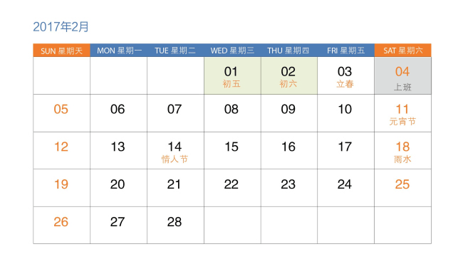 春節(jié):1月27日至2月2日放假,1月22日、2月4日上班;