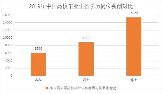 以2019年各學(xué)歷層次的崗位薪酬為例,本科生的平均崗位薪酬為5999元,碩士生的崗位薪酬為8777元,博士生的崗位薪酬平均為15355元。碩士學(xué)歷層次和本科學(xué)歷層次之間的平均崗位薪酬差距為2778元,接近本科生平均崗位薪酬的一半,而博士和碩士之間的平均崗位薪酬差更高達(dá)6721元。每當(dāng)學(xué)歷層次上升一臺(tái)階都將帶來薪酬水平的一大跨越。