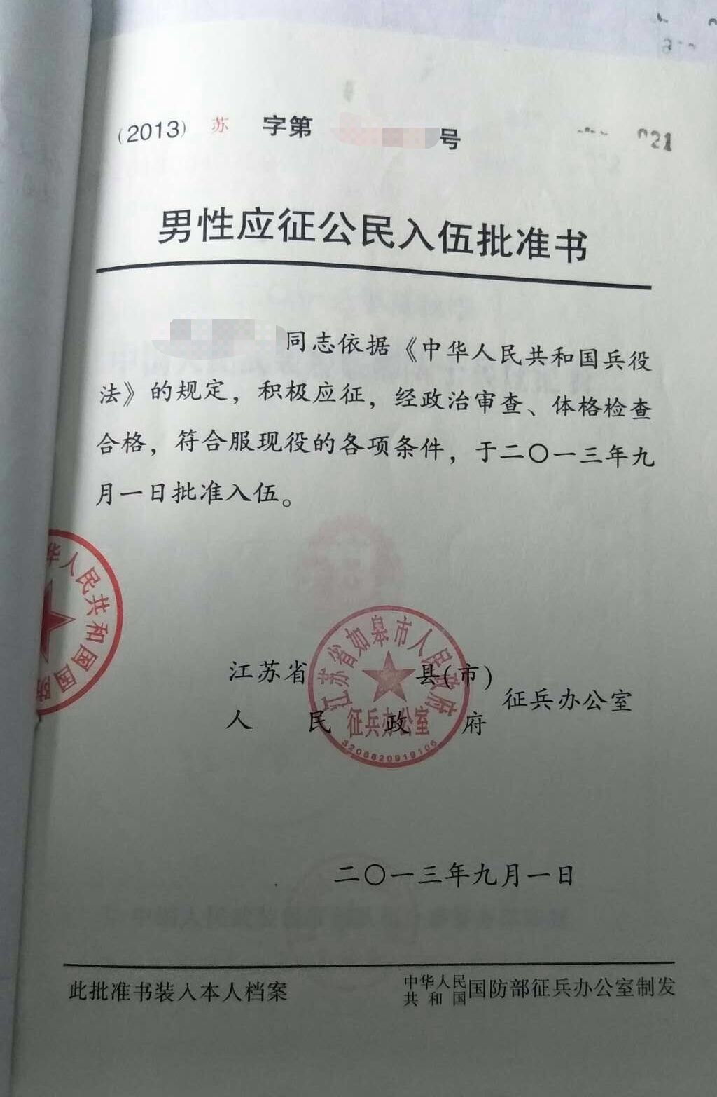 入伍批準(zhǔn)書照片示例(報(bào)考退役大學(xué)生士兵專項(xiàng)計(jì)劃的考生提供)