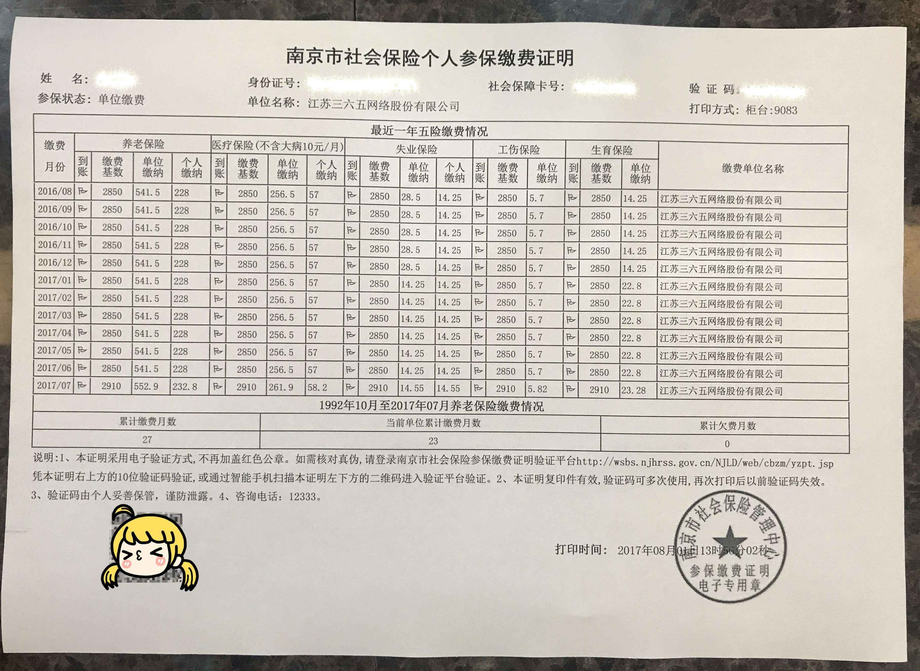 南京市社保參保繳費(fèi)證明照片示例
