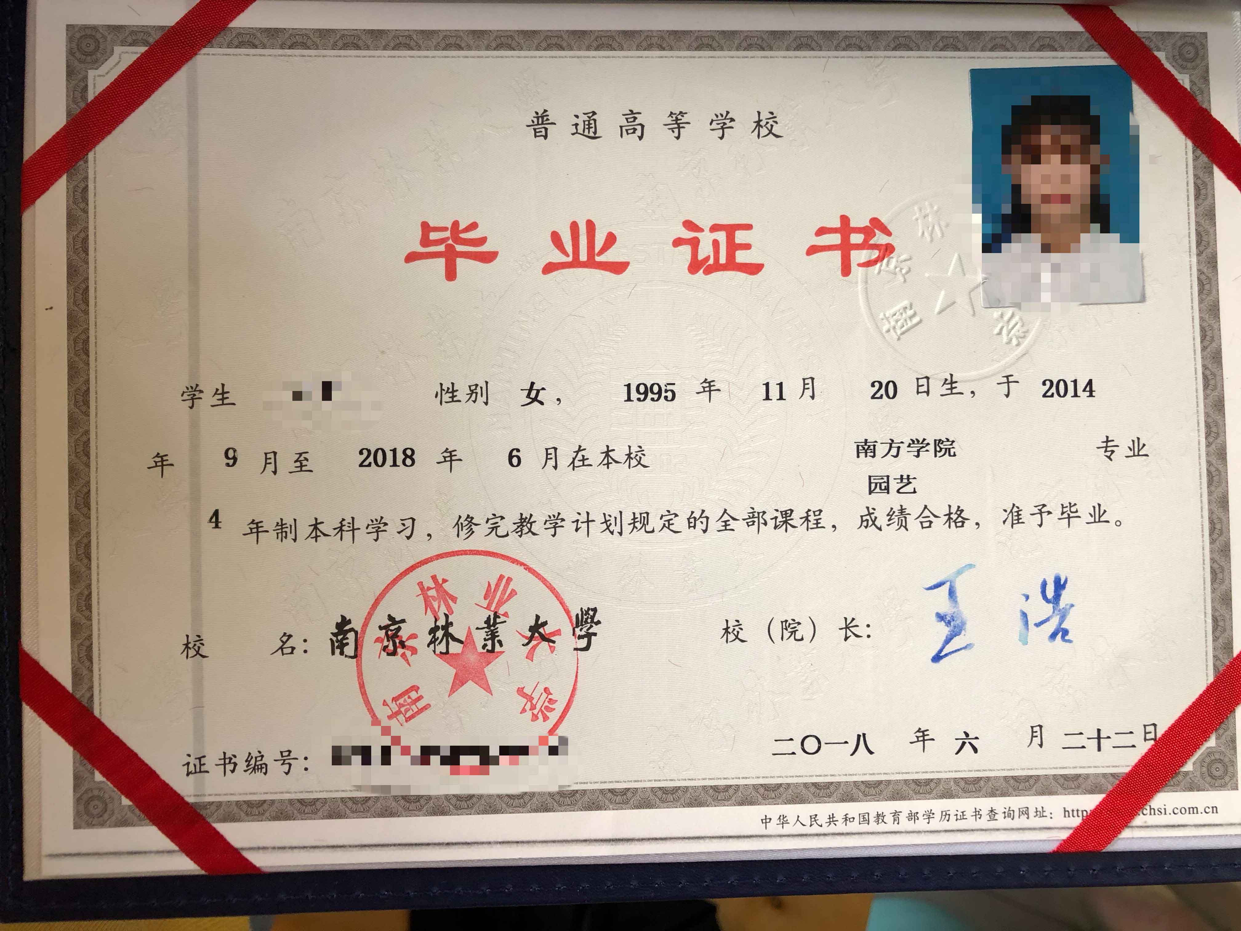 本科畢業(yè)證書照片示例
