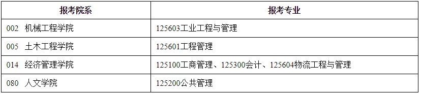 一、四牌樓校區(qū):報考管理類聯(lián)考的考生(考試時間為12月26日一天)。具體報考專業(yè)如下: