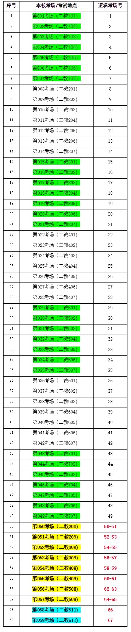 2021年全國碩士研究生招生考試我??键c的考場均安排在第二教學樓(二教),具體分布如下: