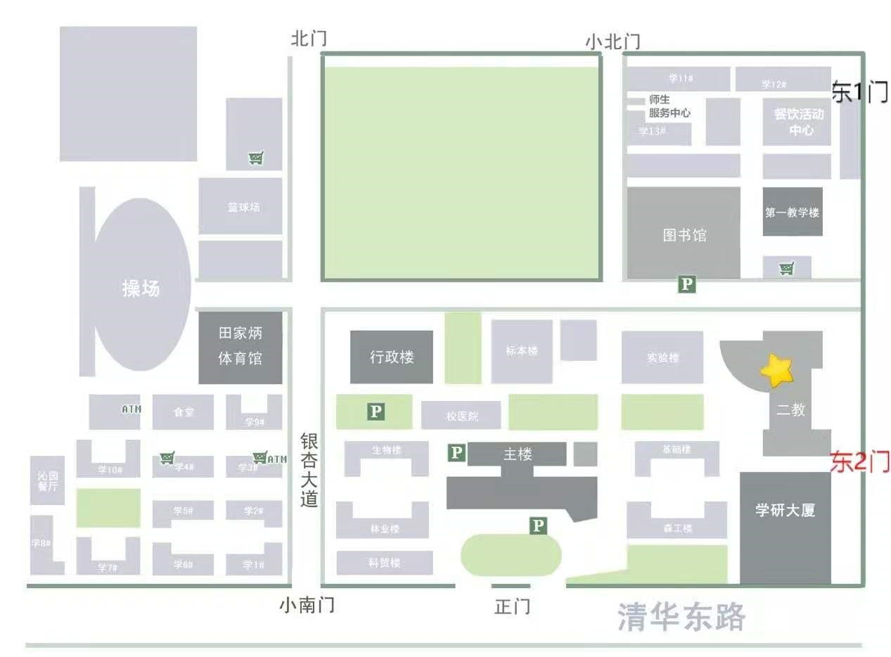 建議乘坐或轉(zhuǎn)乘至地鐵15號線六道口站A1口出,向西步行,在靜淑苑路口向北200米即到東2門入口處;或乘坐公交車355、438、運通110、594等至北京林業(yè)大學站下車,向東行至靜淑苑路口向北200米即到東2門入口處。