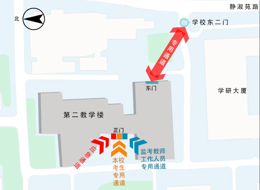 四、進場地點:校外考生一律從東2門出入,校內(nèi)考生從第二教學樓正門進入考場,每場考試結(jié)束后所有考生一律從東2門有序離開。為避免擁堵,保證安全,請考生務(wù)必按指定路線和引導人員的要求進出考區(qū),不得擁擠,自覺保持人與人之間間隔大于1米。