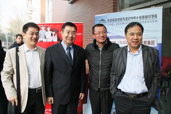 北京社科賽斯教育集團(tuán)甄誠(chéng)、李發(fā)進(jìn)與中國(guó)MBA聯(lián)盟名譽(yù)主席王璞(左二)、農(nóng)大MBA中心主任付文閣(右一)合影
