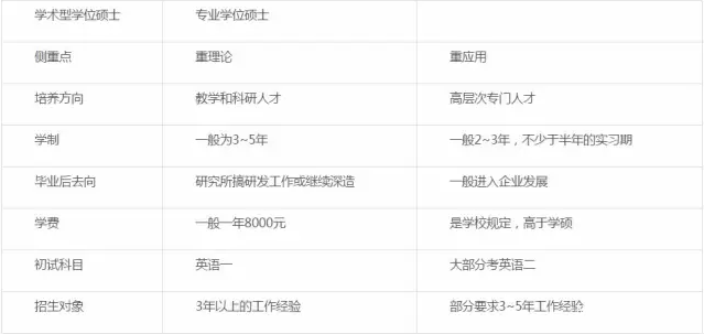 二、專碩與學(xué)術(shù)型學(xué)位的不同