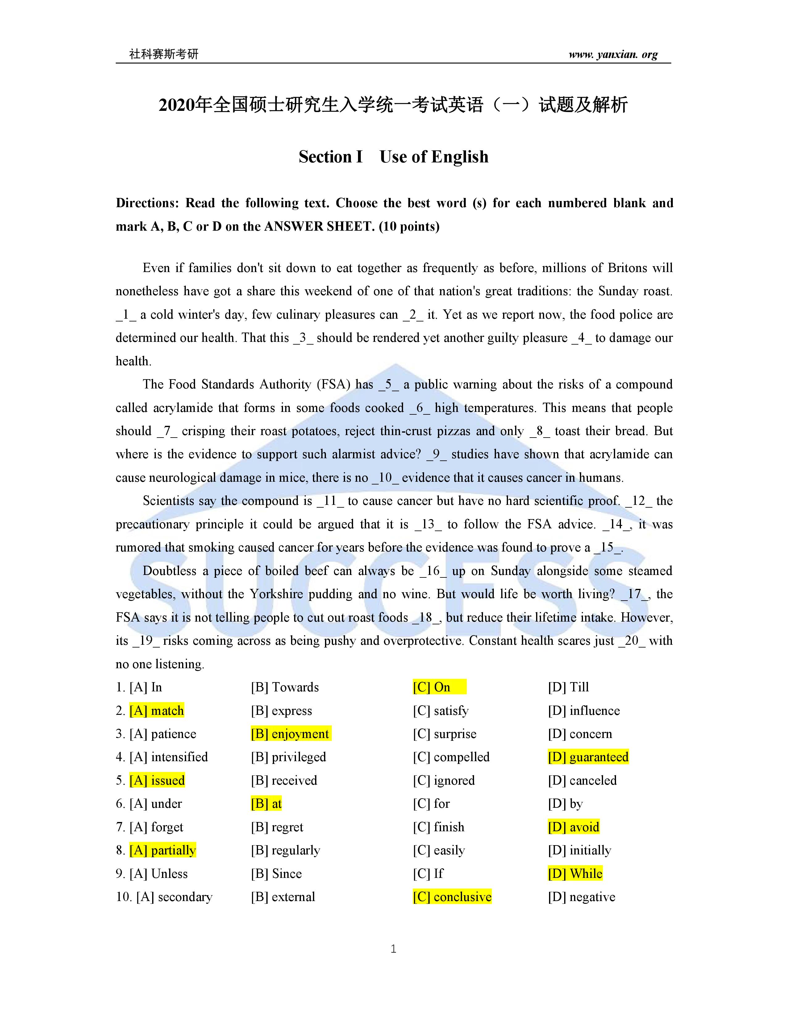 相關(guān)熱詞搜索: 考研真題 2020年考研英語一真題 2020年考研英語一答案