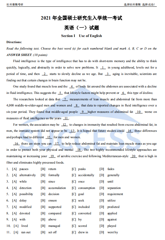 相關(guān)熱詞搜索: 2021考研英語一真題解析 2021考研英語 2021考研