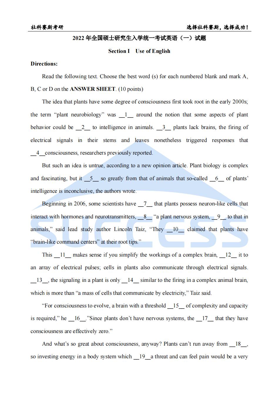 導讀:今天小編為大家?guī)怼?022考研:2022考研英語(一)真題與解析(社科賽斯獨家整理)附估分鏈接”的資訊,希望對大家有所幫助!