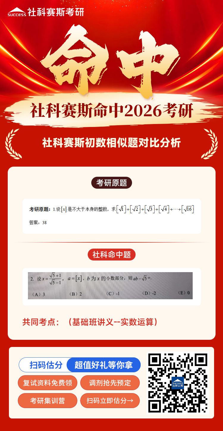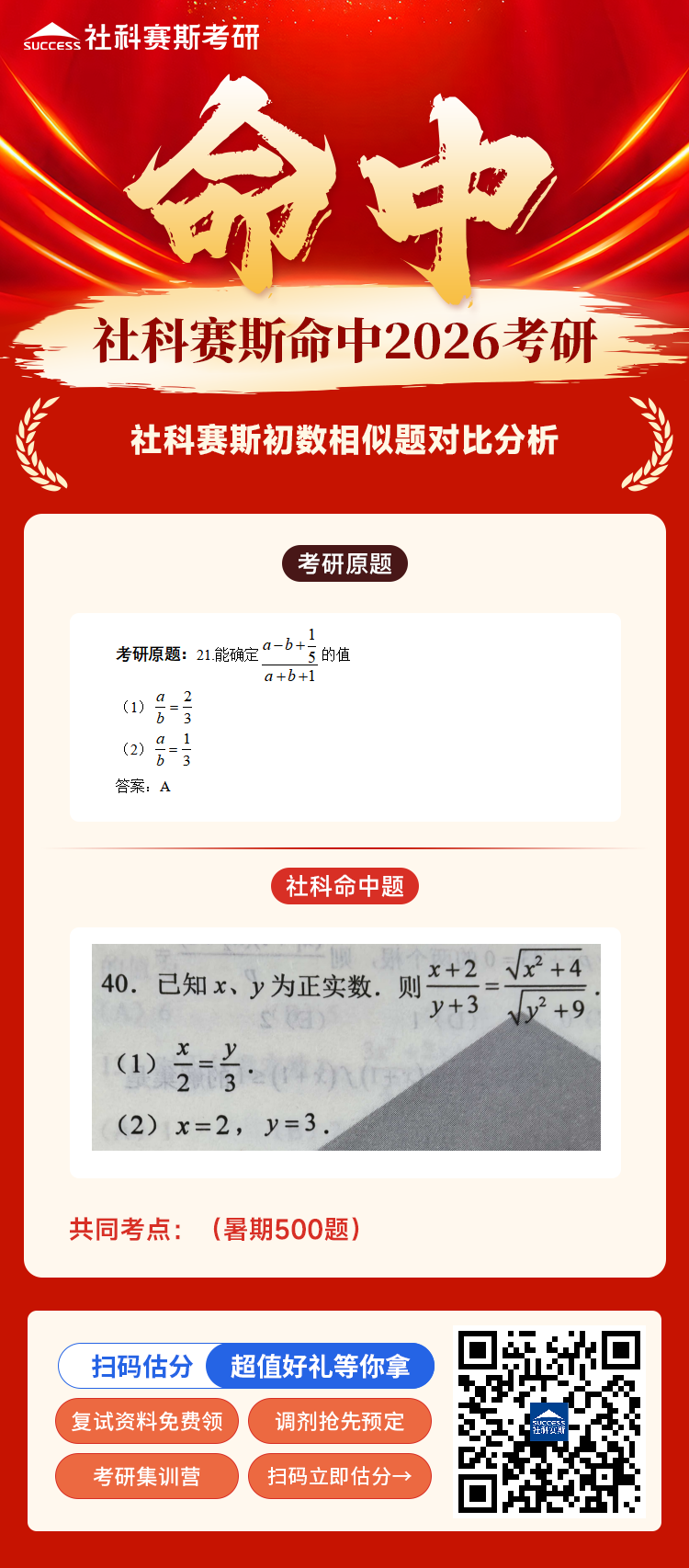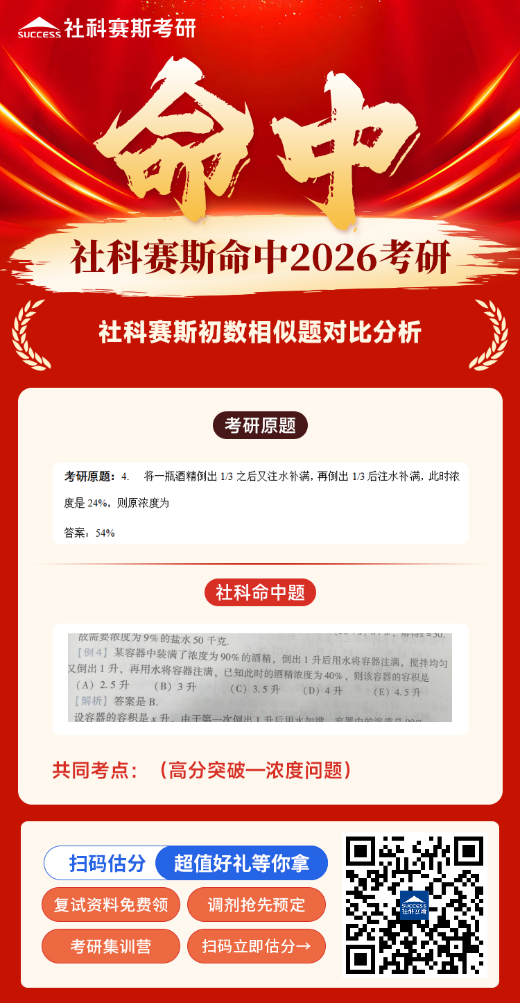 導(dǎo)讀:恭喜?社科賽斯押中2026MBA EMBA MEM MPA MPAcc管綜數(shù)學(xué)部分真題